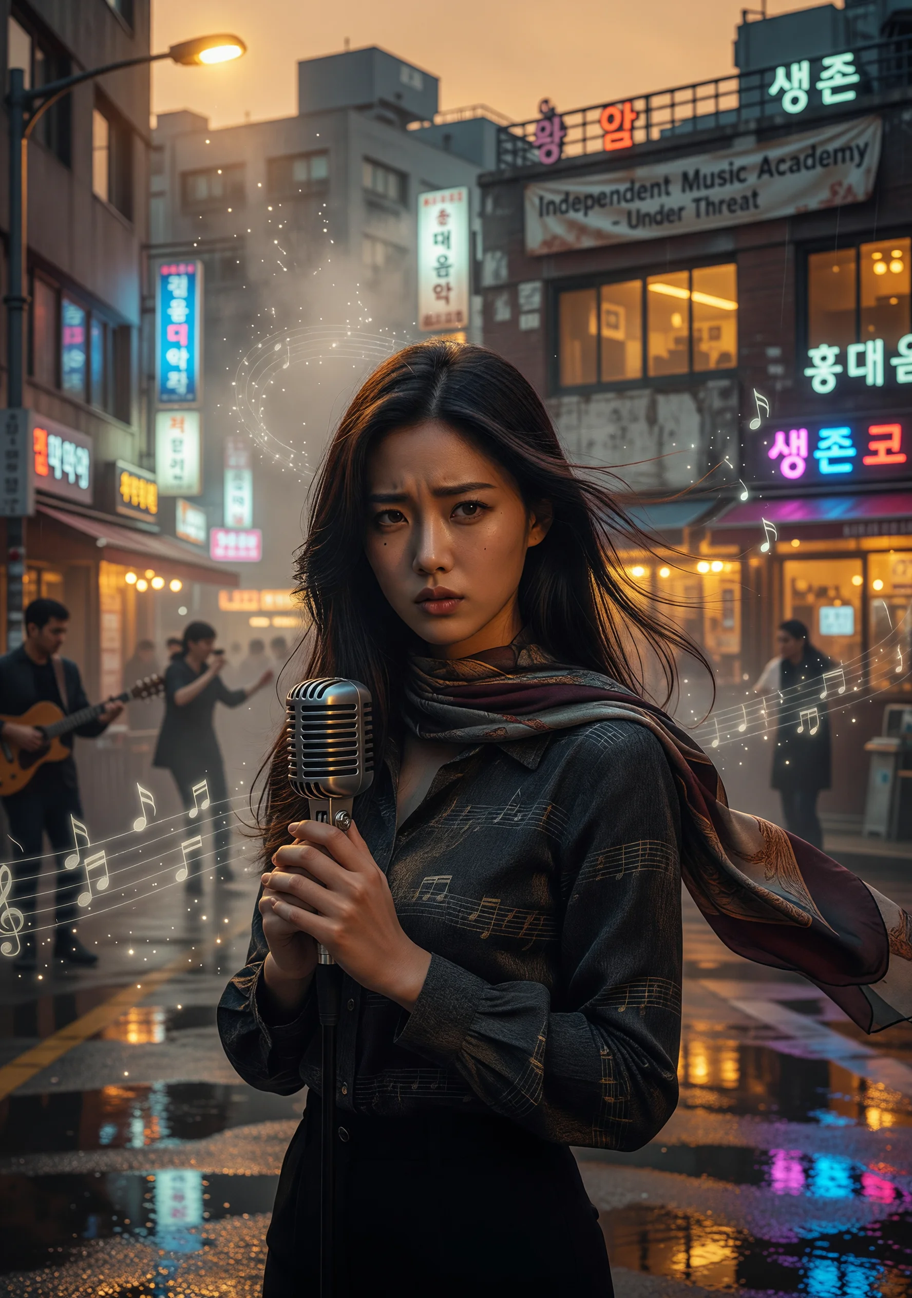 Seoul, present day. The Bae family runs a small but beloved independent music academy in Hongdae, with five daughters of wildly different temperaments: Ji-soo, the gentle eldest with a voice like morning rain; Ellie, razor-sharp and fiercely principled; Min, bookish and withdrawn; Kitty, easily influenced; and Lia, charismatic and dangerously impulsive. Their parents face a slow-burning crisis: the academy lease is expiring, the building has been sold to HanStar Entertainment, and unless one of the daughters makes it big, the family loses everything. When HanStar's golden rookie group BINX arrives in Hongdae to film a reality segment, CEO Cha Joon-ho—cold, immaculately polished, and rumored to end careers as easily as he launches them—dismisses Ellie during an open audition with a single cutting remark overheard through a thin rehearsal wall: 'Technically fine, not marketable enough.' The words calcify into contempt. Ellie signs instead with Wicked Star, a rival agency fronted by charming talent scout Wook-jae, who fills her ears with stories of Cha's sabotage and theft of artists' rights. She rises fast. Meanwhile, Ji-soo falls for BINX's lead vocalist Bin, whose warmth is genuine but whose contract keeps him silent. Cha's interference separates them. Lia, chasing fame recklessly, vanishes with Wook-jae into a predatory underground showcase circuit—and only Cha's quiet, costly intervention pulls her back before the scandal destroys the family. Ellie is forced to re-examine every assumption she built her pride upon. Cha, confronted by her accusations, writes a twelve-page contract addendum that is really a confession. Two people who weaponized their best qualities—her wit, his standards—must dismantle their own defenses to find something neither industry metric can measure.