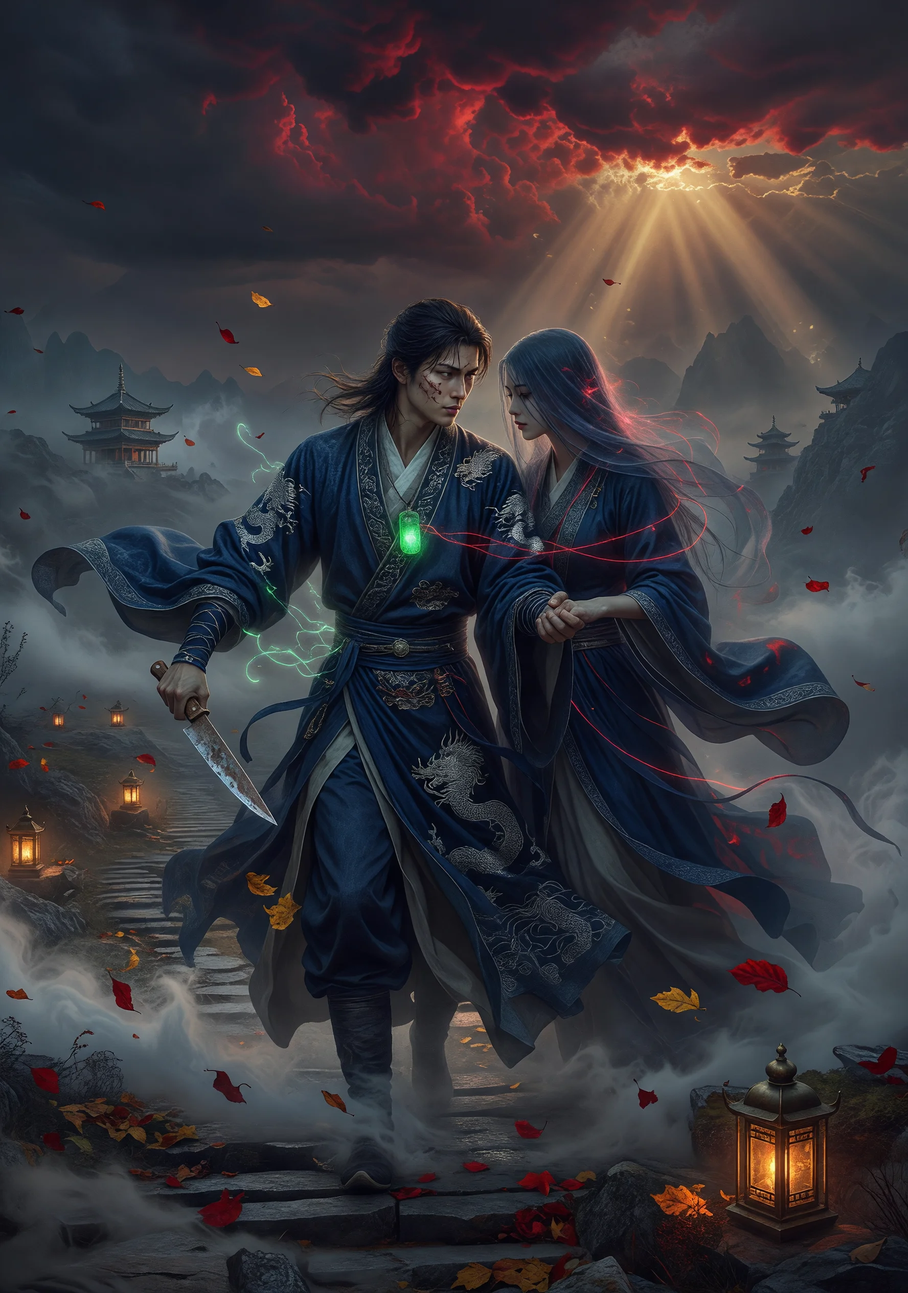 青云山下,少年沈怀烛自幼被正道大派玄霄宗收养,资质驽钝却心性赤诚。宗门七试大会上,他以一柄残破的柴刀意外击败天才师兄,却在胜利之际发现胸口古玉中封印着一缕魔气——那是他已故父亲留下的血脉烙印,与魔门圣女夜扶苏的命魂丝线相连。夜扶苏奉命入正道卧底,刺杀玄霄宗掌门,却在与沈怀烛数度生死相依后,悄然动摇了杀意。当真相大白,宗门以叛徒之名追杀二人,沈怀烛不顾师门恩义,握住夜扶苏的手只说了一句:'我只信我亲眼所见的你。'两人亡命江湖,所到之处,正邪双方皆欲除之而后快。然而随着追杀愈演愈烈,沈怀烛逐渐察觉玄霄宗秘藏百年的惊天罪行——昔年正魔大战的真正导火索,竟是正道高层为夺取上古禁器蚀魂鼎而蓄意屠灭魔门圣地。爱人的身世、宗门的谎言、天下苍生的安危,三重枷锁同时压落,沈怀烛必须在绝境中寻找第三条路:不为正,不为魔,只为人。