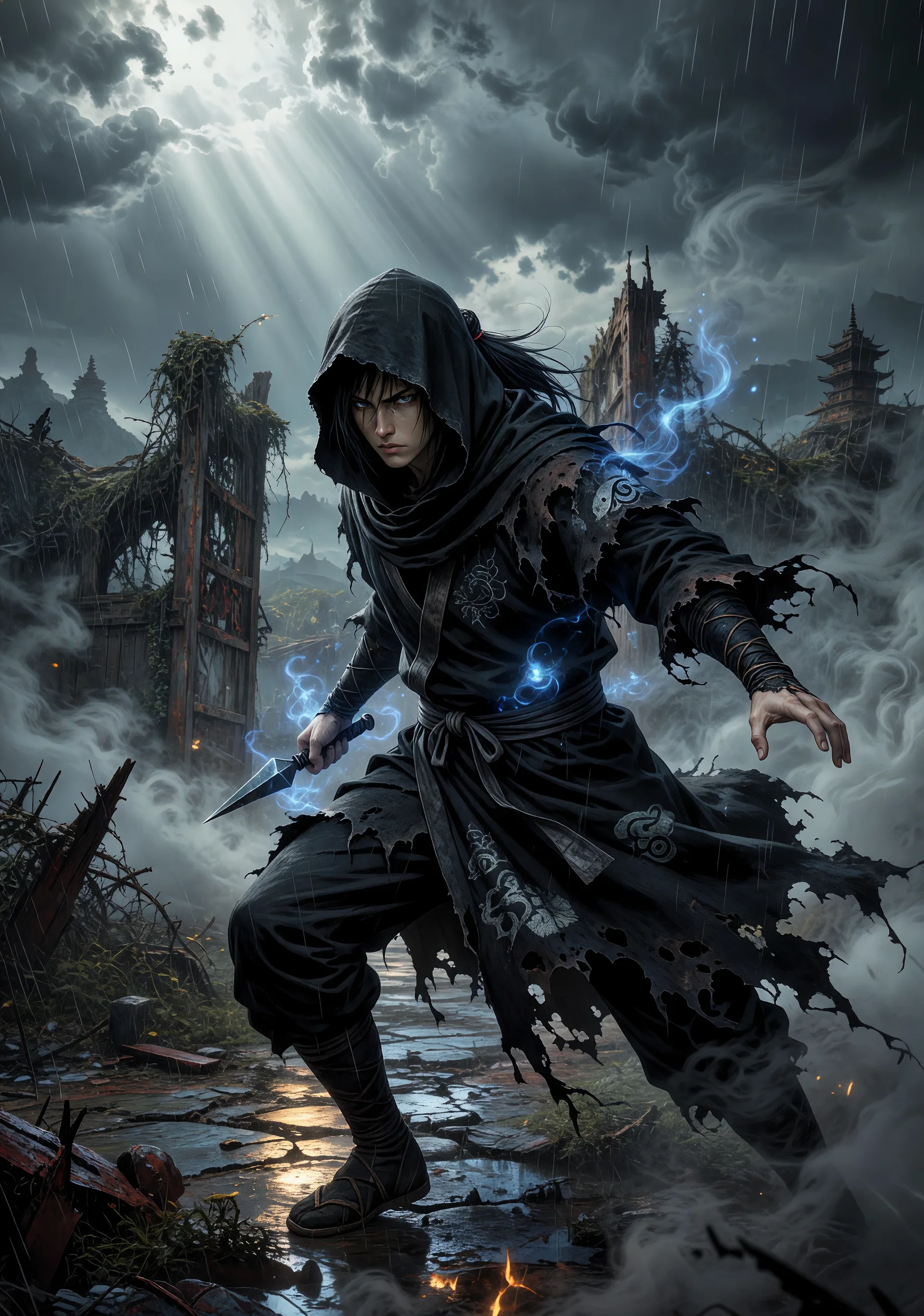荒廃した忍の里「灰葉」。かつて英雄が守ったこの地は、今や腐敗した長老評議会と、見えない権力者たちの思惑によって静かに朽ちつつある。主人公・渦守蓮夜(うずもり・れんや)は、体内に封じられた「九の獣」——人々が恐れる呪いの象徴——を宿したまま、忍術官吏養成所を卒業したばかりの若者である。彼は里の民から疎まれ、仲間からも距離を置かれながらも、「長」になるという夢を捨てられずにいた。ある雨の夜、蓮夜は朽ちた関門の軒下で、老いた元暗部忍者・煙月(えんげつ)が死体の髪を毟る光景を目撃する。煙月はかつて里のために数百の命を奪ったという伝説の刺客だった。蓮夜が問い詰めると、老人は静かにこう答える——「お前が守りたいと言う里は、最初からお前など必要としていない。忍術とは、権力が弱者に着せた衣に過ぎぬ」。その言葉は蓮夜の信念を揺るがし、彼は自らが信じた「友情」「使命」「正義」という概念が、誰かの都合のために作られた幻ではないかと疑い始める。第七班の同期・烈牙(れつが)は天才と呼ばれながら復讐に魂を売り、紅雪(こうせつ)は聡明さゆえに現実に迎合していく。蓮夜は仲間を救うためなのか、それとも自らの存在を証明するためなのか、その境界が霧のように曖昧になっていく中、最後の任務へと向かう。善悪の判断を剥ぎ取られた世界で、彼は何を選ぶのか。