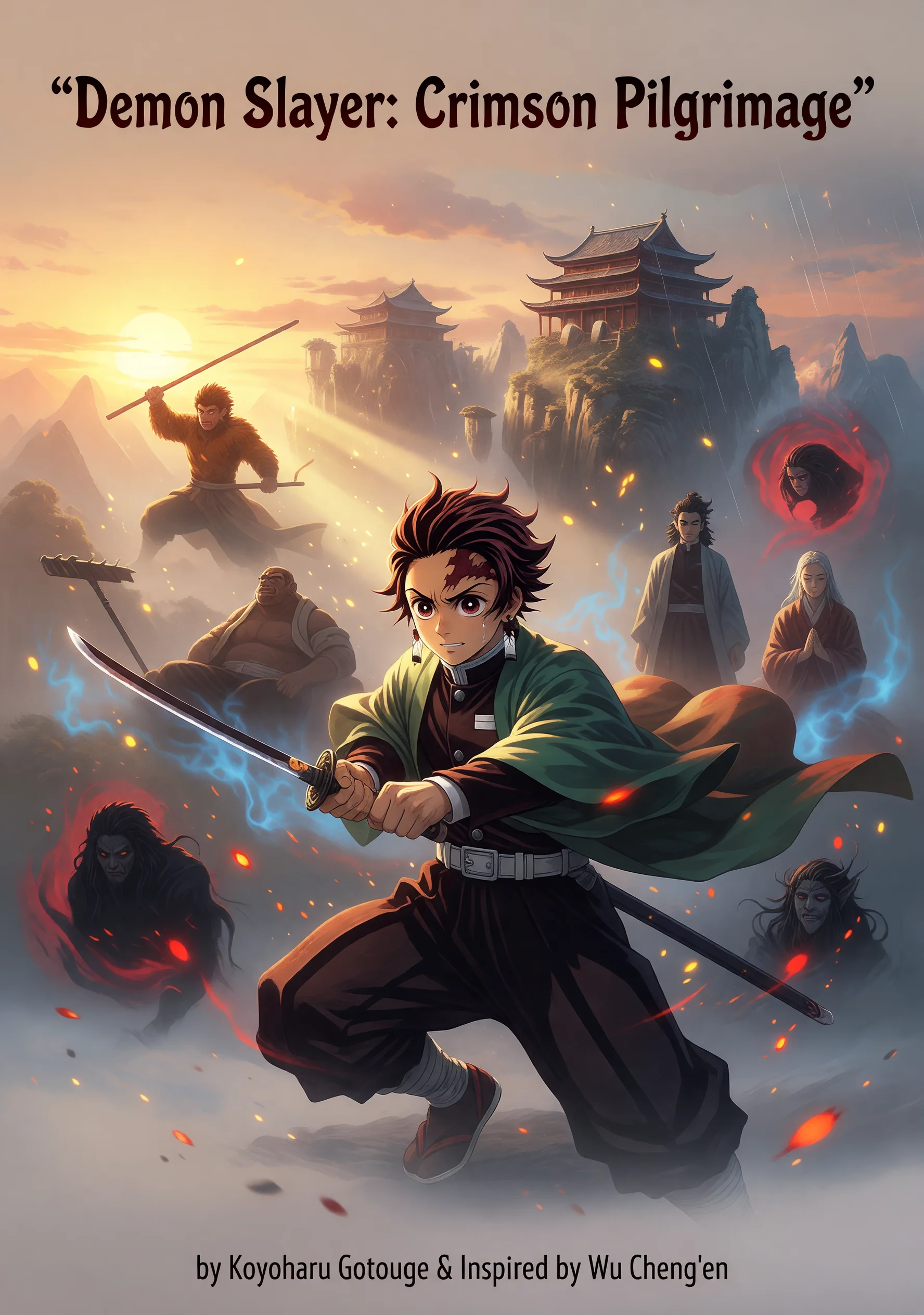 大正時代の日本から、突如として異世界へと飛ばされた鬼殺隊士・灶門炭治郎。気づけば彼は、唐の高僧・三蔵法師が天竺を目指す取経の旅の只中に降り立っていた。言葉も常識も異なるこの世界で、炭治郎はただ一本の日輪刀と、胸に刻まれた家族への誓いだけを携えて歩み始める。 旅の仲間である孫悟空は絶大な力を持ちながらも、妖怪を容赦なく打ち据える苛烈な性格。炭治郎はその姿に、かつての自分が葛藤した問いを重ねる——鬼は、妖怪は、本当に斬らなければならない存在なのか。人を喰らう妖怪の中にも、かつては普通の命があったのではないか。 炭治郎は孫悟空と激しく衝突しながらも、次第に互いの価値観を揺さぶり合う。猪八戒の食欲と諦めの早さ、沙悟浄の沈黙の中に宿る悔恨、三蔵法師の揺るぎなき慈悲——それぞれの旅人が抱える業と痛みを、炭治郎は持ち前の嗅覚と共感で感じ取っていく。 行く手を阻む妖怪たちの中には、誰かを失った悲しみから闇に落ちた者、呪いによって本性を歪められた者もいた。炭治郎は剣を抜きながらも、まず言葉をかける。涙を流しながら斬る。そしてある者は救われ、ある者は散っていく。 西天への道は修行の道であると同時に、炭治郎にとって「慈悲と剣」という永遠の矛盾と向き合う旅となる。果たして彼は、この異世界で本当の意味での「鬼殺し」を超えることができるのか。