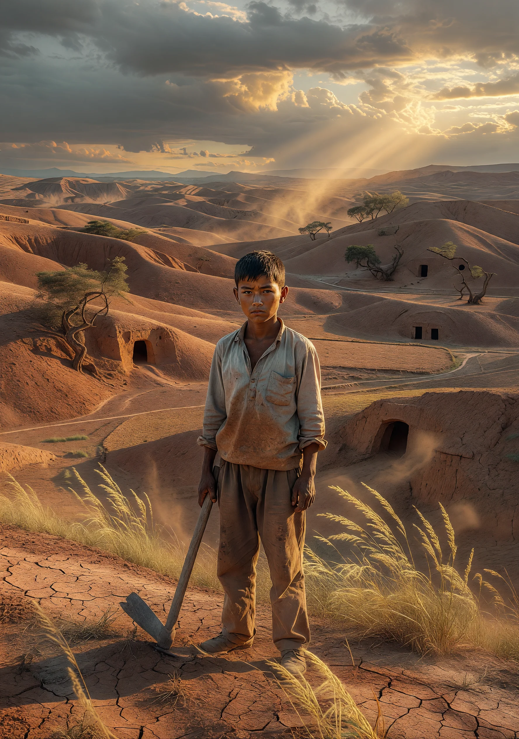 故事发生在二十世纪七十年代末至八十年代初的陕北黄土高原。少年郭石娃跟着母亲在沙湾村落脚,一开始连睡觉的地方都是借来的。村里的孩子嫌他穷,大队书记的儿子杨建国处处给他难堪,可石娃从不还嘴,只是埋头干活。老把式哲大叔发现这孩子身上有股子不服输的劲,开始带着他下地、修渠、赶集,用庄稼汉的方式教他看这个世界。石娃在劳动中慢慢长结实了,也慢慢明白了父亲留下的那句话——人活着要站直——到底是什么意思。县里供销社主任的女儿黄小蓉随父下乡,无意中和石娃成了朋友,她带来了外面世界的消息和几本破旧的书,让石娃第一次知道这片黄土之外还有另一种活法。随着包产到户的政策松动,石娃和母亲靠着自己的双手开始在这片土地上站稳,而多年前父亲究竟因何而死的真相也在一次次无意的触碰中渐渐浮出地面,牵扯出段天柱与杨家之间不堪回首的旧账。石娃没有选择以牙还牙,他只是把地种好,把人做正,用最笨也最硬的方式,替父亲讨回了一个普通人应有的尊严。故事没有英雄,只有一个在苦日子里把脊梁慢慢挺直的少年,和他身后那片沉默而宽厚的黄土。