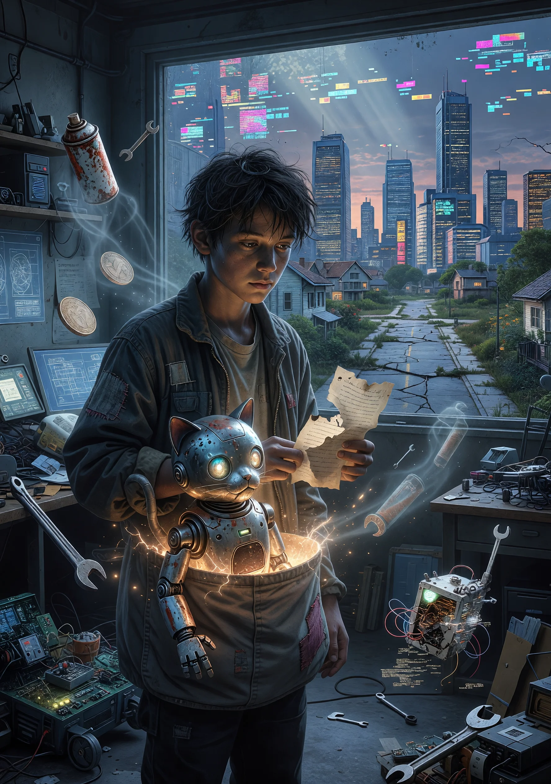 二十二世紀から送り込まれたロボット・ドラ八は、落ちこぼれの少年ノビオの未来を改善するという使命を帯びている。ドラ八の四次元ポケットには、未来の便利道具が詰め込まれているはずだった——はずだった、というのがこの物語の核心である。各章はそれぞれ独立した寓話として機能する。第一章では、「代わりに謝る機械」を使ったノビオが、自分の言葉をすべて忘れる羽目になる。第二章では、「天才頭脳スプレー」が近所中の人間を天才にしてしまい、天才が溢れた社会でかえって誰も評価されなくなる。第三章では、「完璧な友人製造機」が生み出した友人が、本物の友人よりも人気者になってしまう。第四章では、「幸運引き寄せコイン」が、ノビオだけでなく町全体の不幸を一か所に集めることで幸運を演出していたと判明する。最終章では、すべての道具を使い果たしたドラ八が、ポケットの底に一枚の紙切れを見つける。そこには「この道具を使う必要がなくなった時、君は本当に成長した」と書かれていた。ノビオはその紙の意味を理解できない。しかし読者は理解する——道具とは依存であり、便利さとは人間が失うものの別名であると。全体を通じて、科学技術が人間の根本的な欠点を解決できないという皮肉な真実が、温かくも冷酷な筆致で描かれる。