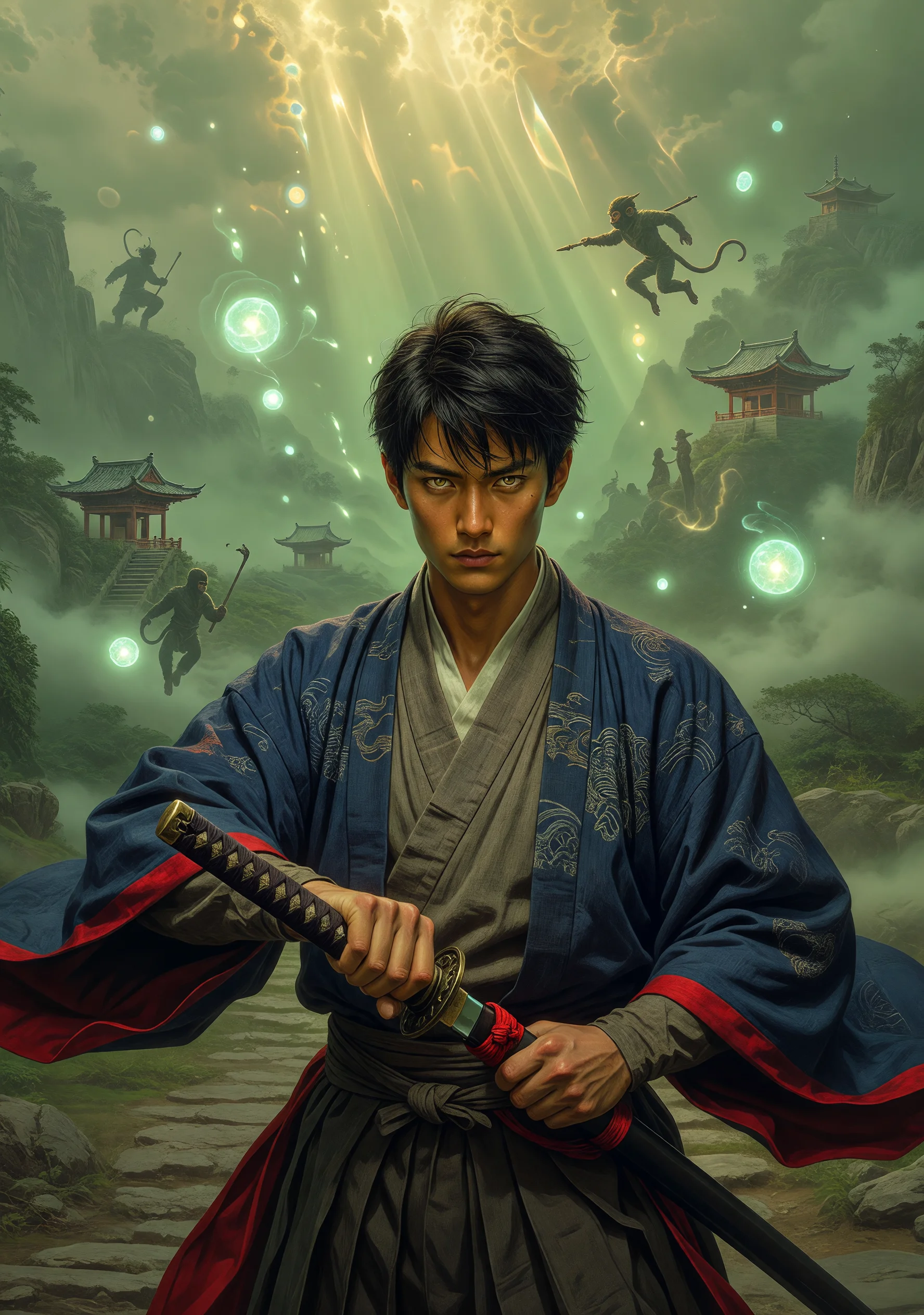 鬼殺隊の元剣士・竈門炭治郎は、ある夜の修行中に謎の光に飲み込まれ、気づけば見知らぬ山道に倒れていた。そこは西遊記の世界――唐の高僧・三蔵法師が天竺を目指す取経の旅の途上であった。炭治郎は旅の一行に偶然合流することになるが、すぐに孫悟空の「問答無用で妖怪を倒す」という姿勢に強い違和感を覚える。鬼を殺めてきた自らの過去と向き合いながら、炭治郎は問いかける。「妖怪もまた、かつては誰かを想っていた存在ではないか」と。彼の全集中の呼吸と水の呼吸から派生した独自の剣技は、妖怪を傷つけるのではなく、その執念や怨念を「断ち切る」ことで本来の魂を解放する力を秘めていた。孫悟空は炭治郎の甘さを嘲るが、彼の涙と誠実さが次第に悟空の心を揺さぶっていく。猪八戒や沙悟浄もそれぞれ炭治郎の存在に影響を受け、一行の絆は新たな形へと変化する。やがて炭治郎は天竺への旅が単なる経典の獲得ではなく、すべての生きるものの「救済」へと繋がる道だと悟る。自分の世界に戻る方法を探しながらも、炭治郎は剣を鞘に収め、慈悲の刃で新たな西天への道を切り拓いていく。