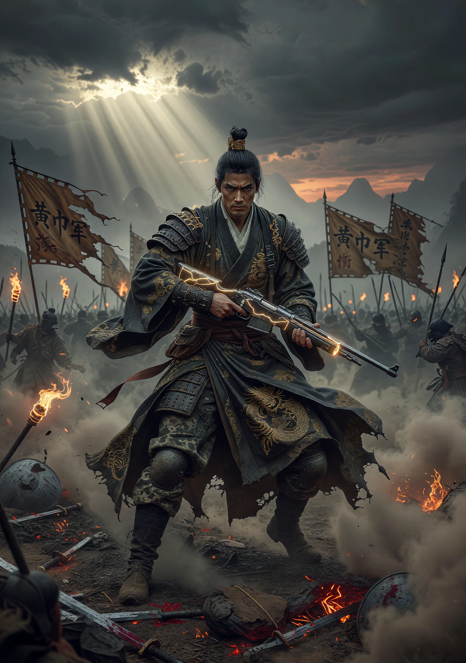 동북아의 차가운 설원, 청산리 대첩의 함성이 채 가시기 전. 백야 김좌진 장군은 일본군의 추격 속에 마지막 탄환을 장전하던 찰나, 눈앞이 하얗게 타오르며 낯선 대지 위에 홀로 서게 된다. 눈을 뜨니 그곳은 황건적의 난이 막 불길처럼 번지기 시작한 후한 말, 삼국의 격류가 소용돌이치는 세계였다. 이름도 언어도 낯선 땅에서 김좌진은 자신의 이름을 '금작진(金鵲振)'이라 고쳐 부르며 생존을 도모한다. 그는 산악 지형을 이용한 기습, 분산과 집결을 반복하는 독립군식 게릴라 전술로 황건 잔당을 궤멸시키며 군웅들의 시선을 한 몸에 받는다. 조조는 그의 전략적 천재성을 탐하여 회유하고, 유비는 그의 의로운 기상에 감동하여 결의를 청하며, 손권은 그의 독자적 군사 조직력을 경계하면서도 연대를 모색한다. 그러나 김좌진의 가슴속에는 끊임없는 갈등이 요동친다. 전장의 백성을 구하려는 의병 정신과, 천하를 얻기 위해 민초를 소모품으로 삼는 패권의 논리 사이에서 그는 무너지지 않으려 발버둥 친다. 제갈량과의 조우에서 두 천재는 전략과 이상을 두고 치열한 논전을 벌이고, 관우와의 기마 대결은 삼국 전체에 전설로 회자된다. 결국 김좌진은 어느 군주의 깃발 아래도 무릎 꿇지 않고, 유랑하는 의군(義軍)을 조직하여 진정한 독립의 기치를 이 고대의 땅에 세우려 한다. 패권의 시대에 홀로 서는 한 장군의 고독하고 장렬한 여정이 펼쳐진다.