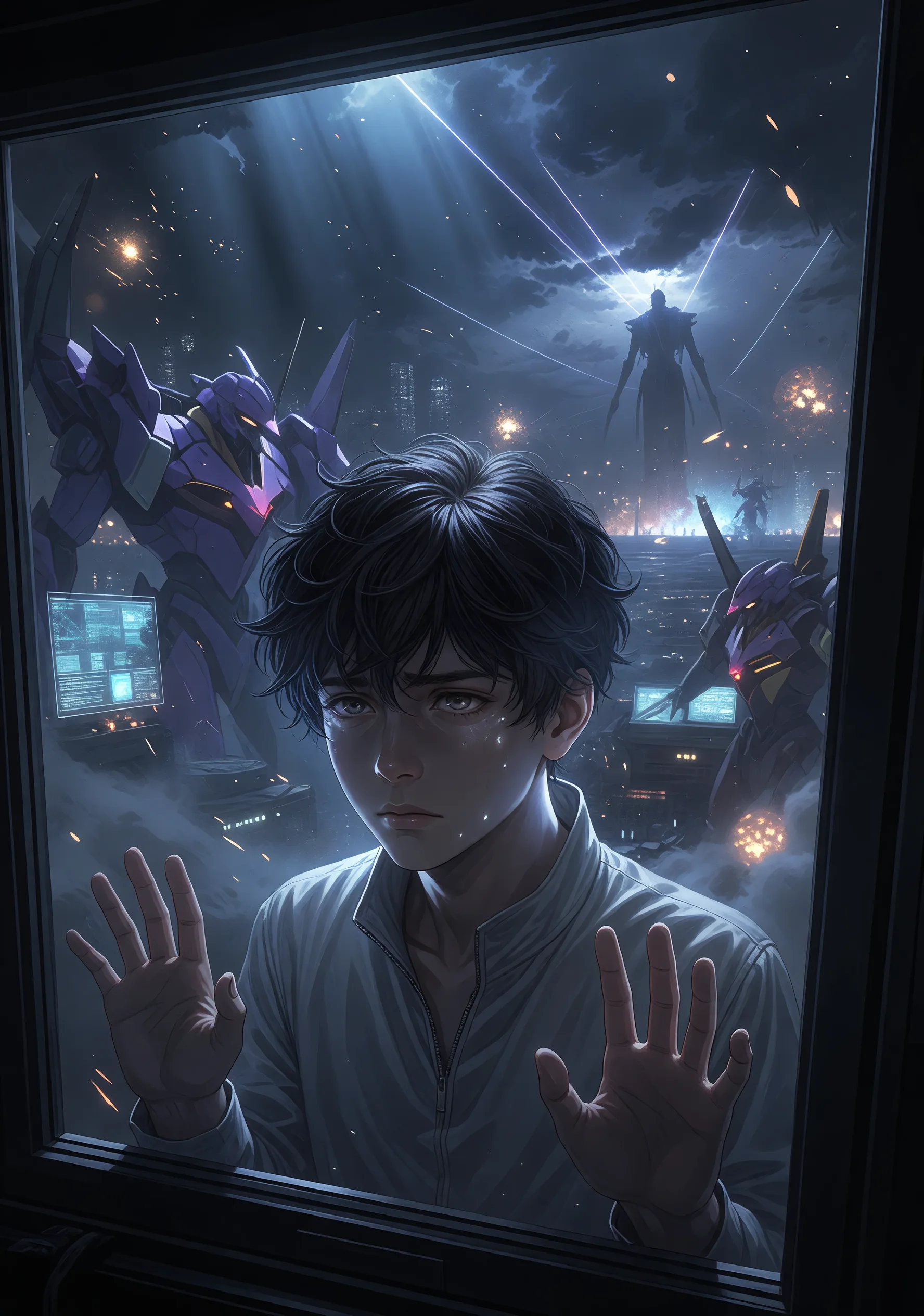 西暦2015年。第三新東京市に使徒が迫る中、碇シンジは父・ゲンドウの冷たい命令に、初めて「乗らない」という言葉で応えた。 NERV司令部は想定外の事態に揺れる。代替パイロットとして起用されたのは、傷だらけの魂を持つ少女たちだった。綾波レイは無言のまま繰り返し戦場へ送り出され、惣流・アスカ・ラングレーは己のプライドを盾に消耗していく。そしてシンジは、安全なシェルターの中から彼女たちが傷つく様子を、ガラス越しに見続ける。 「乗らない」という選択は、本当に自由だったのか。 シンジの心に積もるのは解放感ではなく、静かで重い罪悪感だった。自分の代わりに誰かが死にかけている。自分の代わりに誰かの心が削れていく。しかし今さらコックピットに座ることが、果たして贖罪になるのか——それすらも分からない。 物語は、「英雄にならなかった少年」の視点から語られる。使徒との戦いが続く中、シンジは戦わないことで生まれる別の種類の傷を発見していく。ミサトの失望、カヲルの謎めいた共感、父の沈黙。そして最終的にシンジは問われる——人は何もしないことで、どれほど深く誰かを傷つけられるのか、と。 拒絶から始まる、もう一つの人類補完計画の物語。