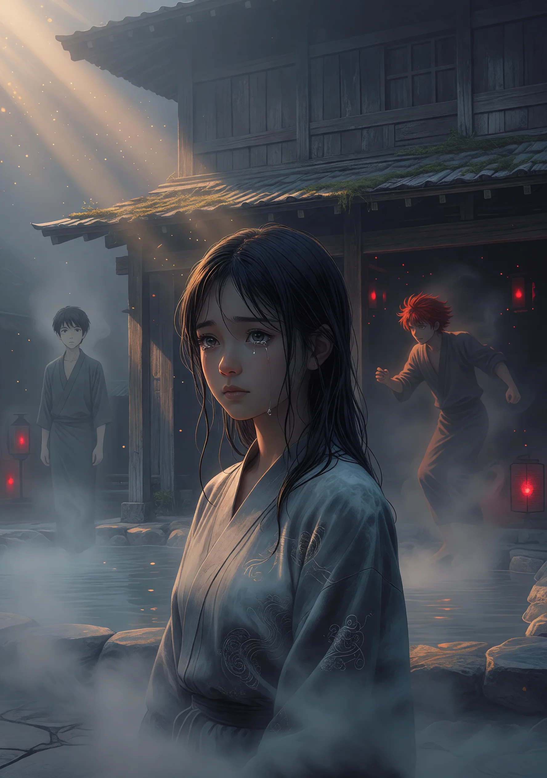 異界の境界に佇む古びた湯屋「霧廻り湯」。そこに迷い込んだ少女・千草は、名を奪われ「草」と呼ばれることになる。湯屋を支配する老婆・鶴は、訪れる者の名を一字剥ぎ取り、魂を縛る術を持つ。千草はそこで二人の少年と出会う。柔和で沈黙がちな灰色の目の少年・澄、そして火のように饒舌で衝動的な赤髪の少年・炎也。澄はすでに半分の名を失い「澄」とだけ呼ばれ、炎也は名を失うことを頑なに拒み続けている。三人は湯屋の日常の中で交錯し、千草は二人の少年の間で自らの感情の揺らぎを意識し始める。しかし物語の核心は恋愛の三角関係ではなく、「名前とは何か」「自我とはいかにして成立するか」という哲学的問いである。名を失えば人は何者になるのか。他者に与えられた名で生きることは、果たして生きることと言えるのか。千草は湯屋の奉公を通じ、働くことの意味、忘却と記憶の非対称性、そして自己同一性の脆さを内省する。やがて彼女は、名を取り戻すことよりも、名なき自分を認識する眼差しを獲得することこそが真の成長であると悟る。澄と炎也もまた、千草との関わりの中でそれぞれの喪失と選択に向き合い、三人は最終的に異なる道へと静かに別れてゆく。霧の中で交わった魂たちは、互いを通過点として、各自の内側へと深く沈んでいく。