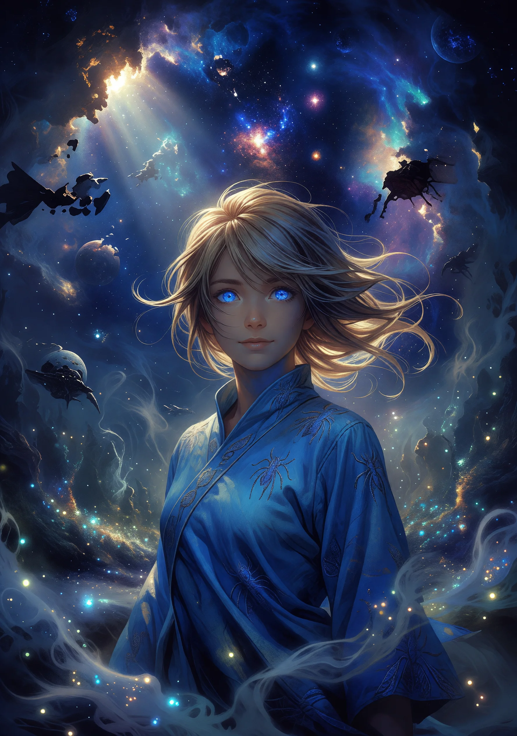 腐海の瘴気と蟲たちとの共存を模索してきたナウシカは、ある日、風の谷の地下深くで謎めいた「二進法の呼び声」を受信する。その信号は時空の裂け目を開き、彼女を遙か未来の宇宙へと引き込む。そこは「三体文明」と地球人類が生死を賭けた駆け引きを繰り広げる、冷酷な暗黒森林法則に支配された宇宙だった。宇宙の文明はことごとく、「発見されれば滅ぼされる」という恐怖の論理のもとで沈黙し、あるいは互いを消滅させていた。地球艦隊は次々と壊滅し、三体人の二次元化兵器「二向箔」が太陽系を脅かす中、ナウシカは宇宙連合艦隊の捕虜として三体の母星へと連行される。しかし彼女は臆さなかった。かつて腐海の真実を見抜き、蟲と人間の間に橋を架けたように、彼女は三体人の恐怖の根源を理解しようとする。人類に残された最後の希望「階梯計画」の代理人として交渉の席に立ち、ナウシカは暗黒森林法則そのものに挑む。異なる文明は本当に共存できないのか。殺戮の連鎖を断ち切る鍵は「信頼」にあるとナウシカは信じ、宇宙規模の文明衝突を前に、かつて誰も試みなかった「森の外への扉」を開こうとする。