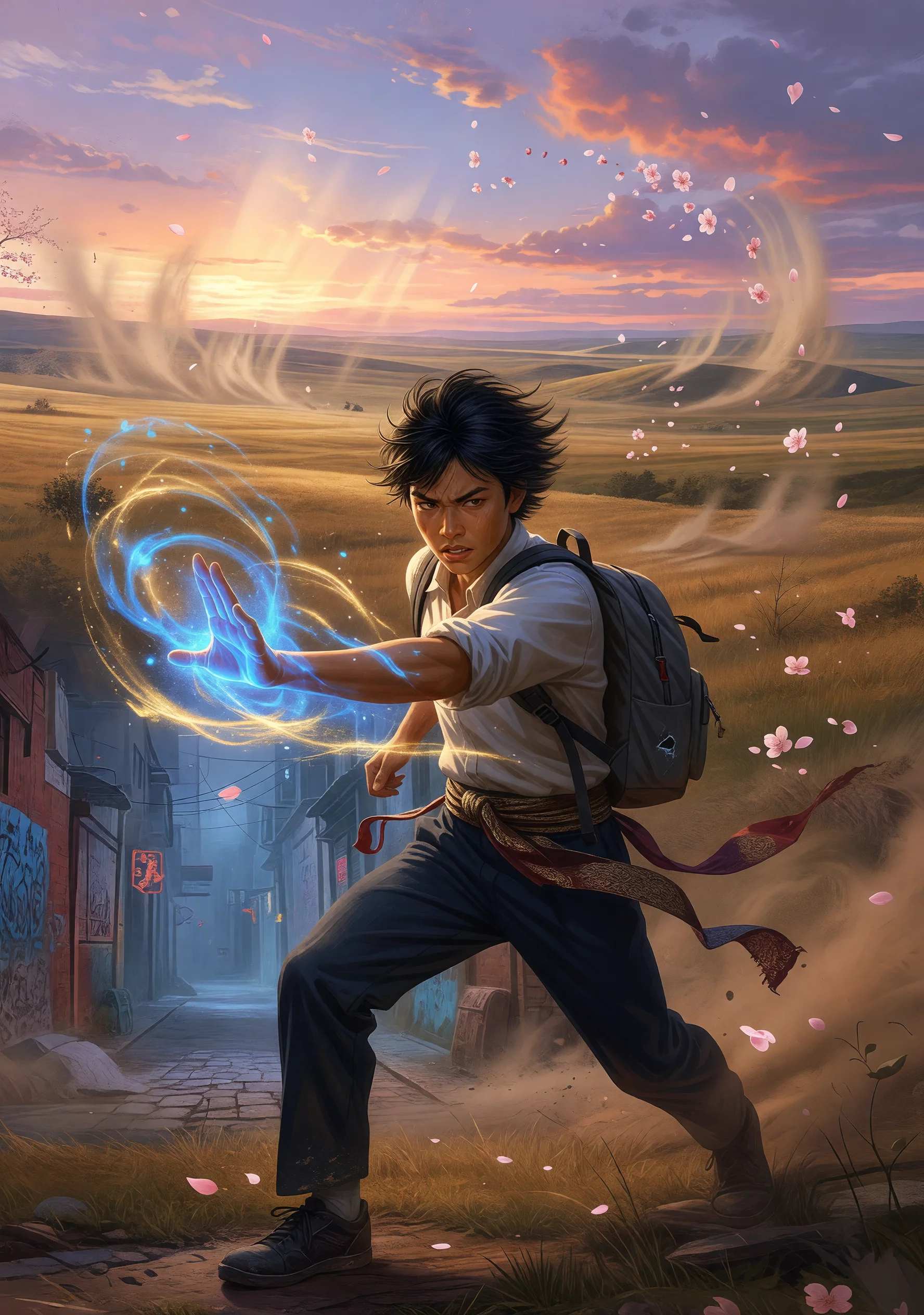 郭小靖是個在蒙古草原上長大的台灣男孩,智商普通、成績吊車尾,連班上最矮的女生都打得過他,但他有一個普通人沒有的特質——他超級不服輸。某天放學路上,他在巷口撿到一個臭氣沖天、酒氣薰天的老乞丐,老乞丐自稱「北丐洪師父」,說要傳授他「降龍十八掌」。郭小靖一開始以為這是詐騙,打算報警,結果被老頭用一根手指戳飛三公尺。從此,郭小靖的人生就徹底走歪了。他必須一邊應付學校的段考和體育課,一邊在凌晨三點爬起來練掌法,還要應付一個從南方島嶼私奔來找他的鬼靈精女生黃小蓉——她老爸是整個江湖最難搞的怪咖,偏偏她本人比她老爸還難搞一百倍。郭小靖夾在師父的魔鬼訓練、黃小蓉的百般算計和死對頭楊小康的無限背刺之間,一邊懷疑人生,一邊熱血前行。故事以台灣校園為舞台,將江湖恩怨包裝成班級鬥爭,把武林祕笈寫成社團課表,探討在一個充滿荒謬與背叛的世界裡,一個資質平庸的少年如何靠著死不放棄撐成一個真正的俠客。