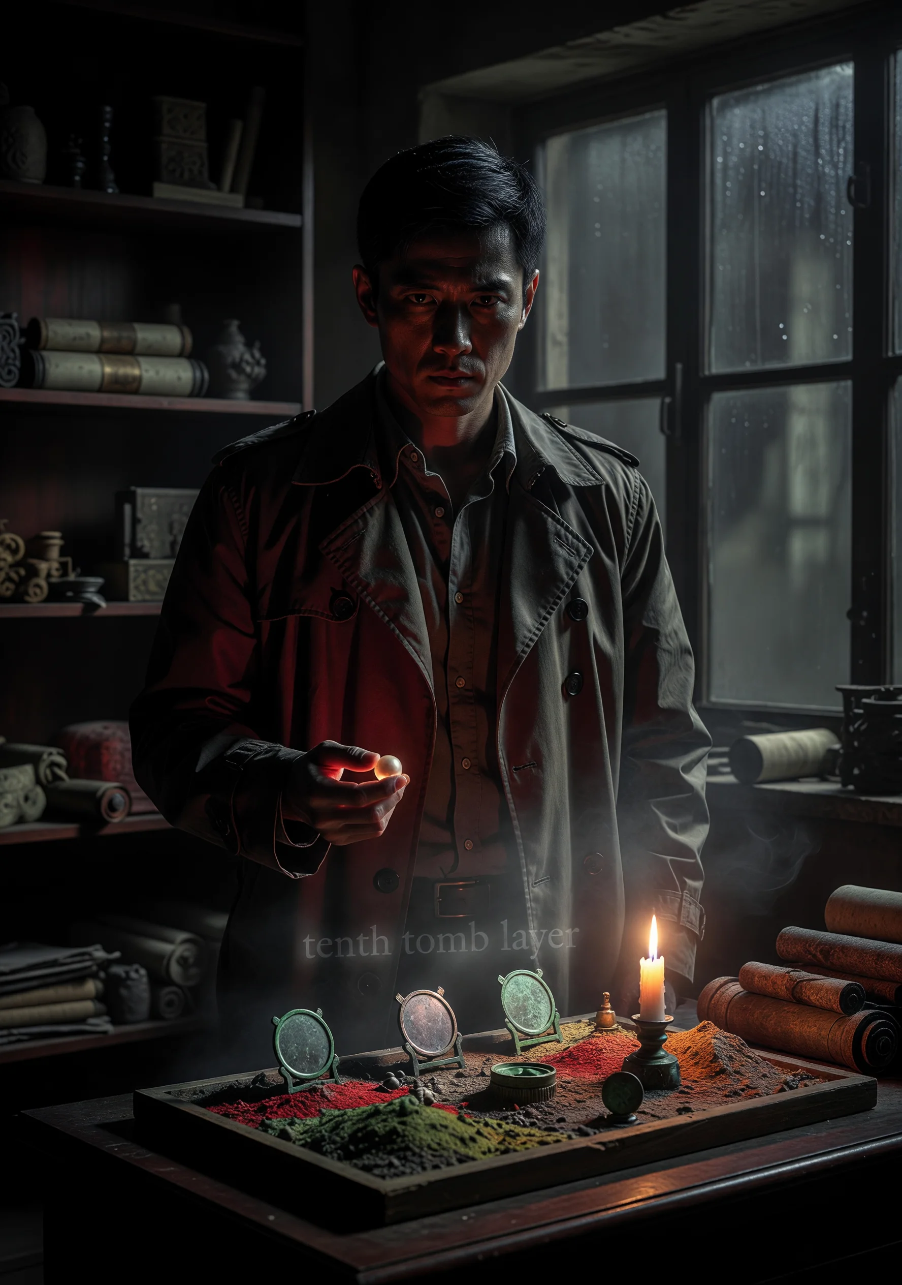 故事發生在2003年的北京,一名知名考古學家在自家書房內離奇暴斃,現場被刻意佈置成一座微縮漢代墓室的格局——燭台、銅鏡、五色土,一切符合「人點燭,鬼吹灯」的古老儀軌。負責偵辦的刑警沈執白,偶然結識了以替文物商人鑑定風水方位為業的神秘顧問厲秋聲,以及來自美國的華裔犯罪地理學者賀知微。三人組成臨時調查小組,發現死者生前曾深入新疆參與一場秘密發掘,帶回一枚據稱能「定魂止魄」的古珠,自此厄運連連。隨著調查深入,一座現實中不存在於任何地圖的「第十層墓穴」逐漸浮現——它並非真正的地下陵寢,而是某個綿延二十年、跨越三代人的連環犯罪佈局,每一起命案都精心仿照一種古代葬法,每一道機關都對應一條人性的裂縫。厲秋聲以陰陽術數解讀現場,沈執白從犯罪行為學倒推凶手心理,賀知微則藉地質與空間分析還原消失的動線。最終他們揭開真相:所謂風水詛咒,不過是最冷靜的人,用最古老的語言,掩蓋了最殘酷的算計。而那枚古珠,見證了一段永遠無法被原諒、也無法被遺忘的背叛。