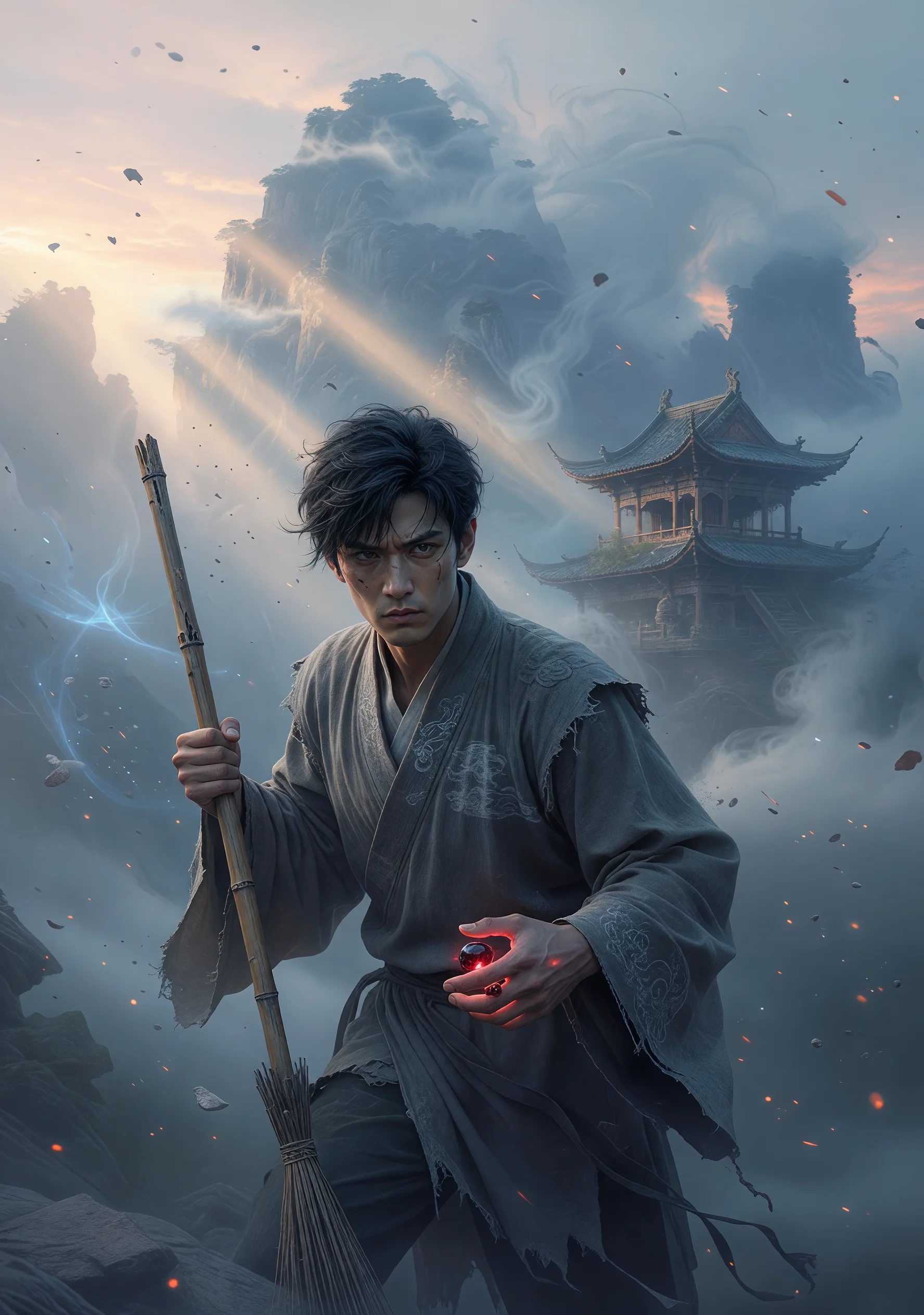 少年沈微入门青云已是第七年。他不是什么天才,也没有遇见什么改变命运的奇缘——或者说,他遇见了,但那奇缘像一根刺一样嵌在肉里,让他既无法忘记,也无法坦然承认。七岁那年,他的村庄在一个无月的夜晚安静地消失了,正如一段旋律突然被人掐断。他不知道是魔教还是别的什么,只知道第二天早晨他醒来,周围全是冷却的灰烬,以及一颗莫名嵌入掌心的暗红色珠子,像是有人将另一个人的心脏缩小后塞给了他。青云门收留了他,给了他一间朝北的厢房和一把笨重的扫帚。他的同门师兄修炼飞剑,师姐在月下打坐,而他每天清晨生火、煮粥、洗砚台,再在伙房的角落里用那些别人用剩的法诀碎片拼凑出勉强能称为修炼的东西。他喜欢过师姐苏晚棠,那种喜欢安静、局促,像积雪压在屋檐上,从未开口说出,就已经悄悄化掉了。后来他遇见了一个从对立山头下来的女修,叫做凌霜,眼神冷而干净,不像任何人。再后来,有人告诉他,掌心那颗珠子里住着一些不该存在于正道的东西,而他已经和它共存了七年。他不知道自己是在修道,还是只是在和某种安静的黑暗保持一种长期的、彼此克制的默契。