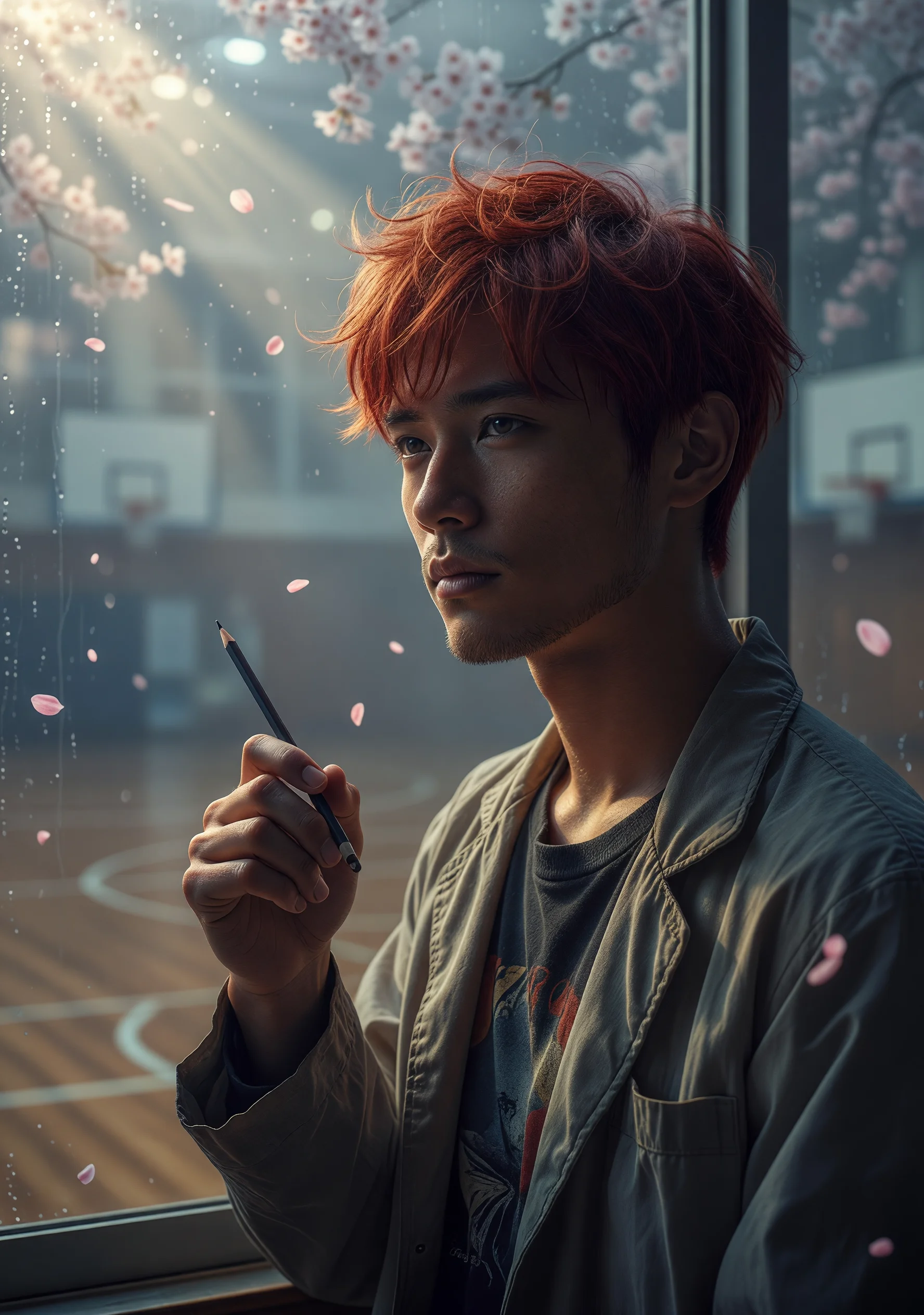 櫻木涼介,一個從街頭混混蛻變為籃球天才的少年,在全國高中籃球聯賽的決勝場上,為了攔截一記致命的傳球,以不自然的姿勢墜落地板——脊椎挫傷,右膝韌帶完全斷裂。醒來後,醫生告知他:職業籃球之路,此生無望。 退出球隊的涼介回到湘北高中,卻發現自己成了一個透明人。昔日隊友忙於備戰下一季,女神晴子依舊守候在場邊,但他站在玻璃窗外望著那片他再也無法踏入的木質地板,第一次感受到徹骨的孤獨。 他開始在放學後流連於學校美術室,起初只是為了逃避,卻意外發現自己能用畫筆精準捕捉運動員瞬間爆發的肌肉張力與眼神。美術老師木村注意到了他,說:「你的線條裡有憤怒,也有不甘心,這才是藝術最真實的靈魂。」 涼介在拒絕、崩潰、接受之間反覆掙扎,逐漸拼湊出一個新的自我輪廓——不再是場上那個靠天賦橫衝直撞的紅髮怪人,而是一個懂得用另一種語言傾訴熱情的創作者。當他將那幅畫著隊友流川楓起跳瞬間的作品投稿全國美術展,他終於明白:夢想從來不只有一種形狀。