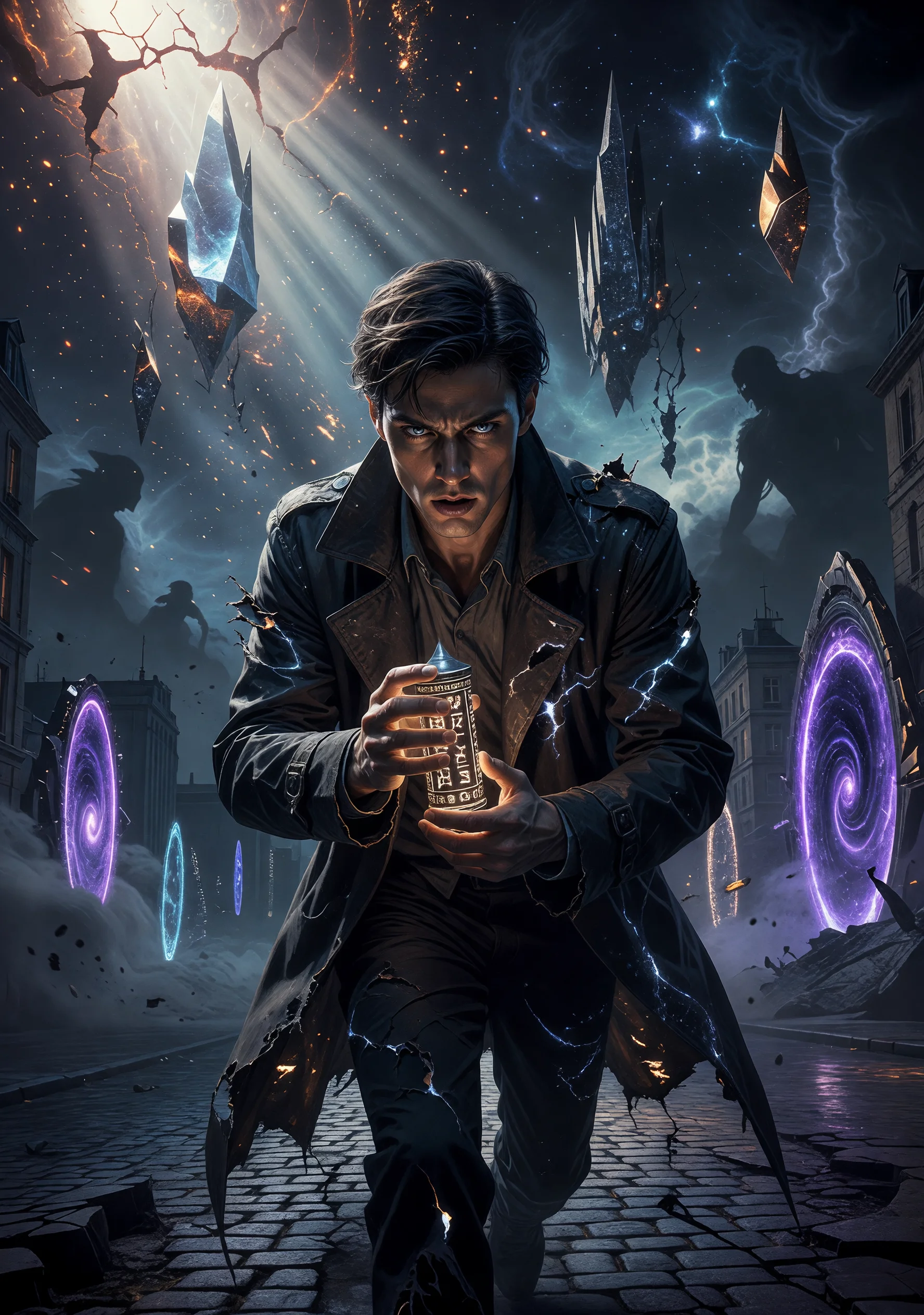 Dans un Paris de demain où les frontières entre les mondes se sont effondrées, un jeune historien français nommé Étienne Valcourt se retrouve propulsé dans un univers où des êtres d'une puissance extraordinaire côtoient les simples mortels. Trahi par son associé Marcellin Fouché — un homme ambitieux qui a vendu ses recherches à une corporation cosmique sans scrupules — Étienne se retrouve abandonné sans ressources dans ce monde nouveau, à la manière d'un Dantès modern jeté dans les abysses de l'adversité. C'est dans cette détresse qu'il rencontre Aurora Vance, guerrière céleste aux pouvoirs incommensurables, commandante d'un escadron d'élite que l'on nomme les Mousquetaires de l'Infini. Séduite non par la force brute mais par l'ingéniosité et le courage tranquille d'Étienne, Aurora l'accueille parmi les siens. Ensemble, ils forment un quatuor légendaire avec Bastien le colossal, Renée l'insaisissable et le mystérieux Théo, dont les origines demeurent voilées. Leur devise — Tous pour un, un pour tous — devient le cri de ralliement contre Thanos le Seigneur Vide, un conquérant interstellaire qui collecte les âmes des civilisations vaincues comme trophées. Étienne, armé de sa connaissance de l'histoire humaine et d'un pendentif mystérieux hérité d'un abbé mourant, découvre que la véritable force ne réside pas dans les pouvoirs surnaturels mais dans la fidélité, l'honneur et l'amour. Sa relation avec Aurora évolue du respect mutuel vers une tendresse profonde, tandis que la menace du Seigneur Vide se précise. Le récit entrelace duels d'honneur, batailles cosmiques, intrigues politiques au sein du Conseil des Héros et moments de grâce intime, culminant dans une confrontation épique où la trahison de Fouché révèle ses dernières conséquences.