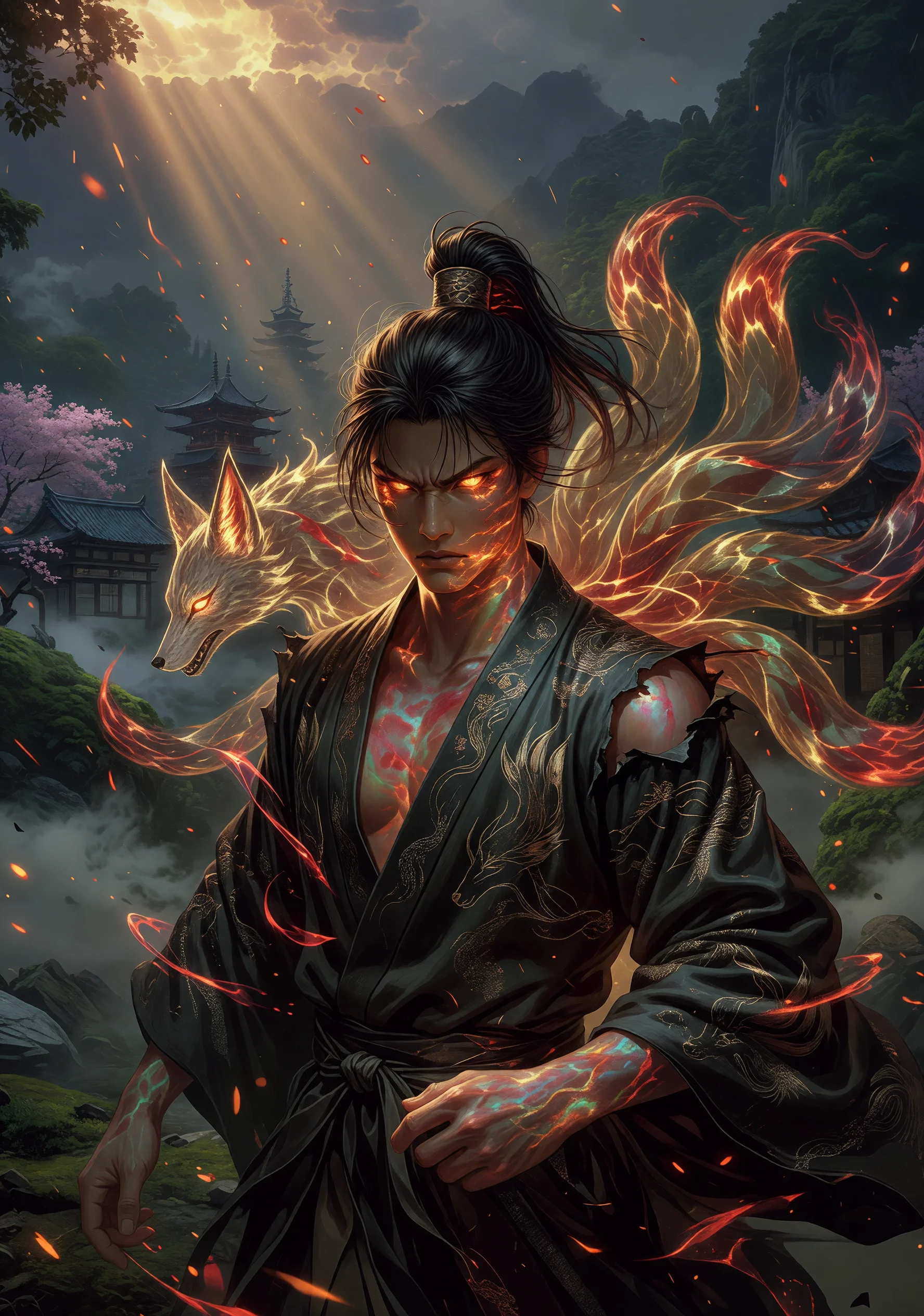 In dem verborgenen Dorf Blattschatten lebt der junge Krieger Nariko, dem seit seiner Geburt ein mächtiger Geist – der Neunschweifige Fuchs – in die Seele eingeschlossen wurde. Die Dorfbewohner fürchten ihn und meiden seinen Blick. Während alle anderen Schüler der Kampfschule danach streben, ihren Körper zu stählen und Feinde zu bezwingen, spürt Nariko, dass der eigentliche Kampf in seinem Inneren wütet: zwischen dem lodernden Geist, der ihn von innen verbrennt, und seiner eigenen, noch unentdeckten Stille. Als er in der Prüfung versagt und dem verachteten Außenseiter begegnet – dem rätselhaften Wanderlehrer Kairo, einem Mann, der einst das stärkste Schwert führte und es für immer niederlegte – beginnt Narikos eigentliche Reise. Nicht zu einem Thron aus Ruhm, sondern zu dem Ort, den er noch nie betreten hat: zu sich selbst. Begleitet von der klugen und zweifelnden Sakura und dem stolzen, von Rache zerrissenen Sasuri, durchquert Nariko Wälder, die schweigen, Flüsse, die fragen, und Schlachtfelder, die Antworten fordern. Er begegnet weisen Müttern, verlorenen Lehrern und sterbenden Feinden, die alle ein und dieselbe Lektion tragen. Der Krieg, der über das Land hereinbricht, ist nur der Spiegel des Krieges, der in jedem Menschen brennt. Nariko muss nicht der Stärkste werden – er muss der Wahrhaftigste sein. Und der Fuchs in seiner Seele ist nicht sein Feind, sondern sein tiefster, wildester Lehrer.
