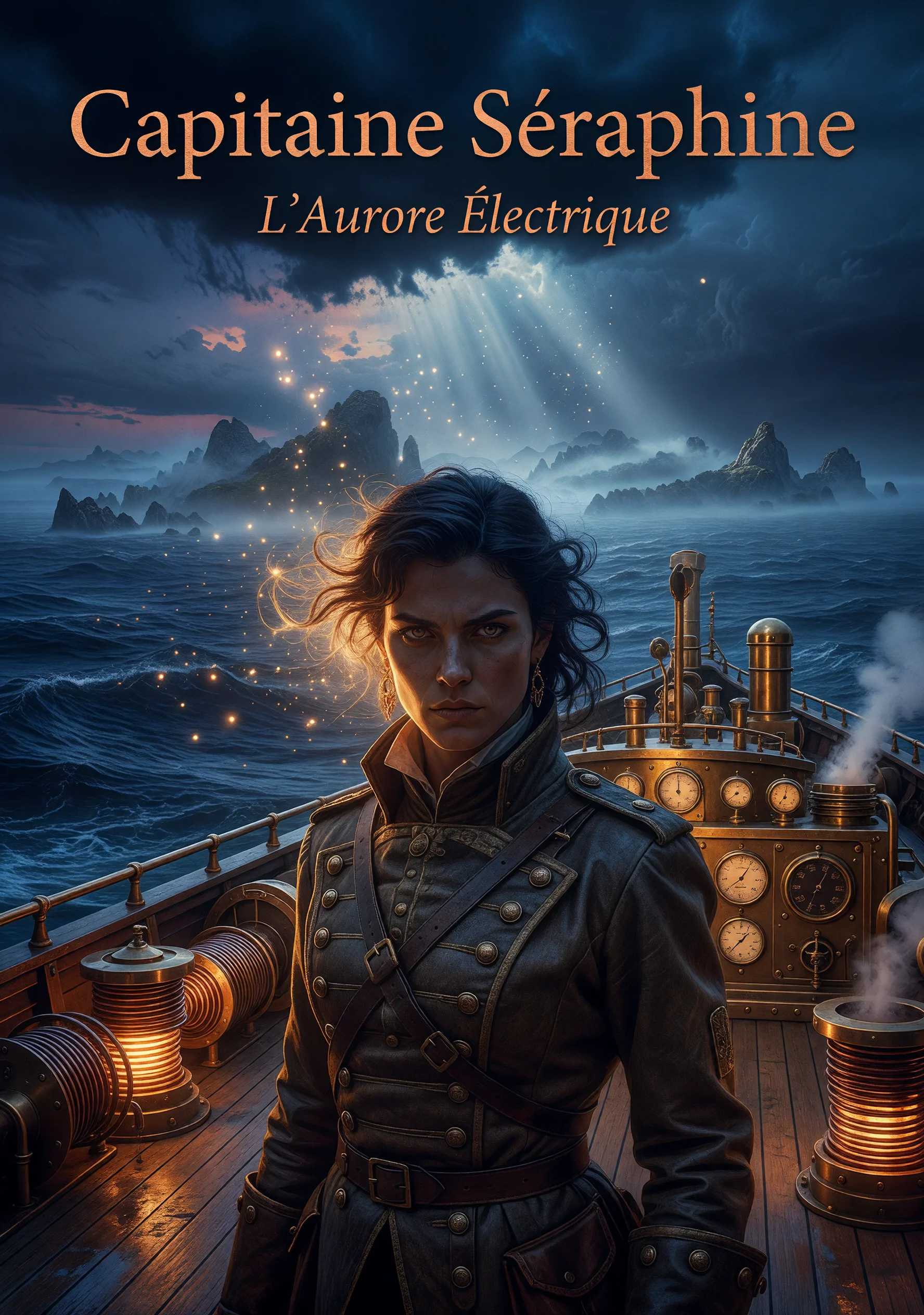En l'an 1892, l'océan mondial est sillonné par d'étranges récits : des îles inconnues surgissent et disparaissent, chacune abritant une invention prodigieuse que nul cartographe n'ose consigner. Le professeur Lucien Vaillard, géographe réputé de l'Académie de Paris, embarque à bord du vaisseau expérimental L'Aurore Électrique, commandé par la mystérieuse Capitaine Séraphine, une ingénieure visionnaire exilée de sa patrie après avoir refusé de vendre ses découvertes aux empires coloniaux. Accompagnés d'une équipe hétéroclite — un jeune marin rêveur nommé Théo, une médecin botaniste et une horlogère prodige — ils naviguent vers l'Archipel Infini, un chapelet d'îles légendaires dissimulées dans les brumes du Pacifique Sud. Chaque île révèle une civilisation unique dotée d'une merveille technologique : l'île de Lumiverre, dont les habitants éclairent la nuit grâce à des cristaux bioluminescents cultivés depuis des siècles ; l'île Soufflante, où les vents sont canalisés par d'immenses orgues d'acier pour propulser navires et moulins ; l'île des Profondeurs, engloutie à moitié, peuplée de plongeurs qui respirent par des branchies artificielles forgées en corail traité. À travers neuf escales extraordinaires, l'équipage transforme chaque communauté rencontrée — guérissant les malades, réconciliant des peuples en guerre, redonnant espoir aux oubliés. Mais un consortium impérial traque L'Aurore Électrique, convoitant ces secrets technologiques pour les armer. L'aventure culmine dans une tempête magnétique au cœur de l'archipel, où Séraphine doit choisir entre la fuite et la révélation de sa propre invention : une machine capable de rendre la connaissance accessible à tous les peuples de la Terre. Le roman célèbre la curiosité, la solidarité et la puissance des idées contre les ambitions des tyrans.