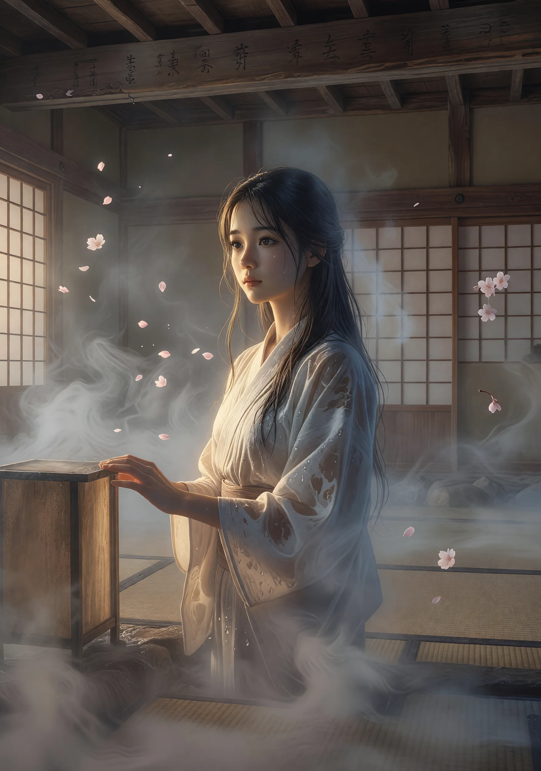 吾輩は湯女である——名前もなく、魂もおそらく半分ほど失われた状態で、この話は始まる。 語り手は「吾輩」、すなわち一人の少女である。彼女の真の名は霧島汐音といったが、異界の湯屋「千霧楼」に迷い込んだその夜から、名前の半分を奪われ、「汐」とだけ呼ばれるようになった。名前とは何か。自我とは何か。吾輩はこの湯屋の湯煙の中で、その問いを飽きもせず反芻し続ける。 湯屋の主は女傑・湯婆婆——金銭と契約を神聖視し、人間の名を担保に魂を縛る女である。彼女の息子は肥大した自意識の塊であり、吾輩はその無害な滑稽さに内心失笑しつつも、丁寧に奉仕する。 湯屋には二人の青年がいる。一人は寡黙で誠実な釜爺の弟子・煤丸、もう一人は仮面の美青年・白狐。彼らはそれぞれ異なる形で「名前」を持ち、あるいは失い、吾輩の哲学的遍歴に干渉してくる。 吾輩は観察する。湯女たちの虚栄を、神々の食欲を、白狐が取り戻せぬ記憶を。そして最終的に問う——人間とは名前を持つ生き物なのか、それとも名前に持たれる生き物なのか、と。物語は帰還でも喪失でもなく、問いそのものを抱えたまま、湯煙の奥へ静かに消えていく。