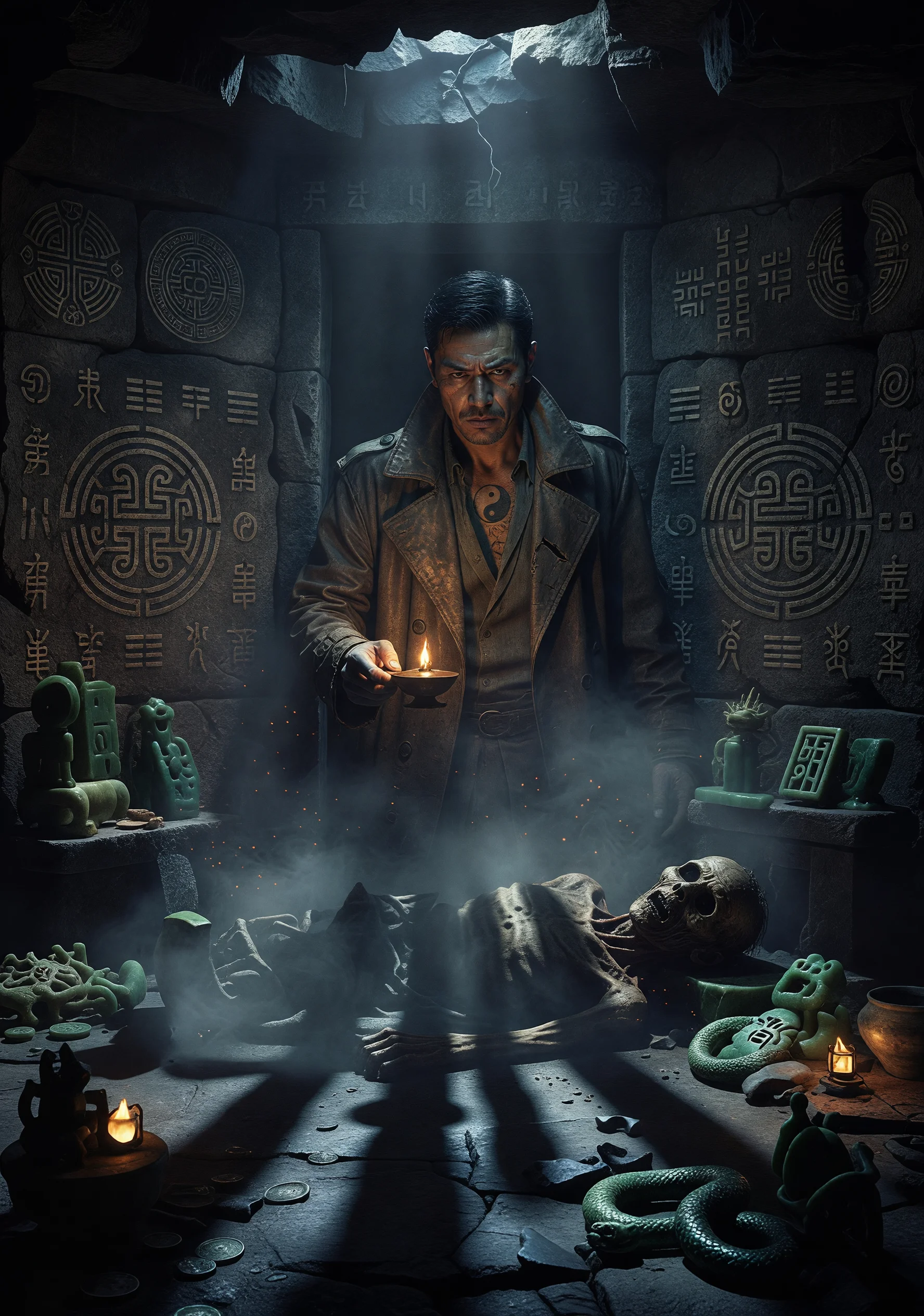 故事發生在1990年代末的北京,一名考古學教授在未公開的漢代地下墓室中離奇死亡。現場密封如初,無任何外人進入的痕跡,卻留下一具面目扭曲的屍體與一盞熄滅的油燈。刑警江正陽奉命調查此案,卻發現死者生前正秘密追蹤一個自稱「摸金堂」的地下盜墓組織。他被迫與三名身分曖昧的民間人士合作:精通「十六字陰陽風水秘術」的退伍老兵陸天闊、在古董圈與黑市間兩面周旋的肥胖掮客馬寬,以及從美國歸來、具備地質學背景卻隱瞞過去的女性學者謝影秋。四人循線追入甘肅祁連山腹地一座失載於史冊的秦代地宮。隨著深入,每一個墓室都宛如精心設計的犯罪現場——機關非鬼怪所為,而是人心算計;風水佈局非天地玄機,而是對人類恐懼心理的精準操控。殺人者早在千年之前便以屍體為棋,以謎題為局,等待後人一步步踏入。而江正陽逐漸意識到,謝影秋的出現並非偶然,她所追尋的「雮塵珠」背後,隱藏著一樁跨越二十年、牽連三個家族的謀殺連環案。古墓是犯罪現場,風水是動機,而最深的黑暗,從不藏在地底,而是藏在同行者的眼神之中。